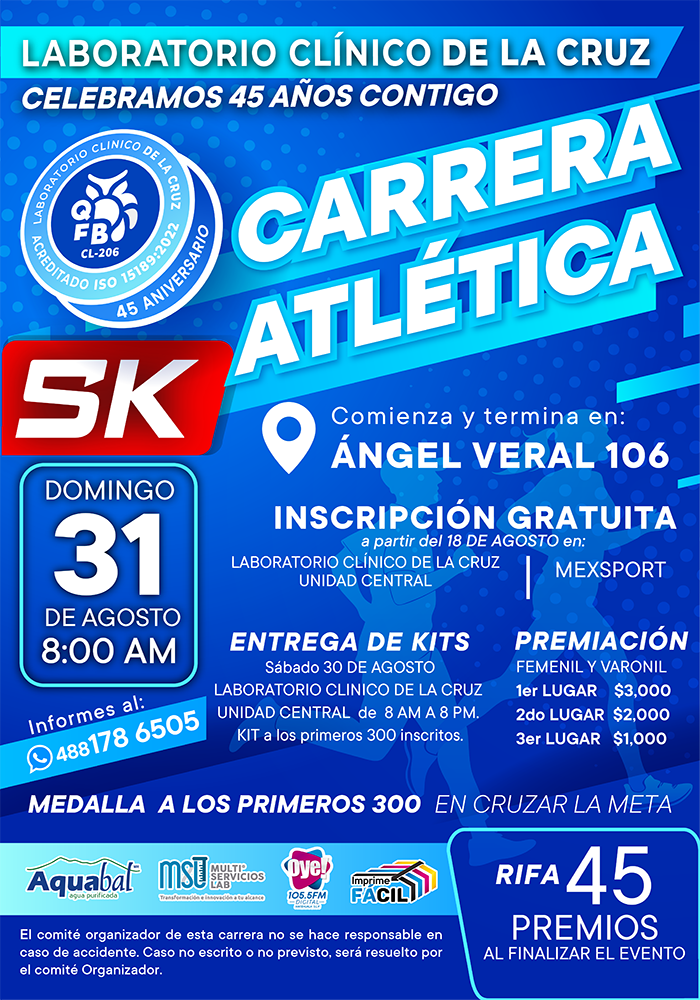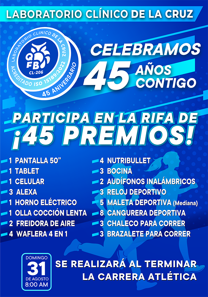 Además, al final de la carrera se rifarán 45 premios entre los participantes de la carrera de adultos. ¡No te lo pierdas!